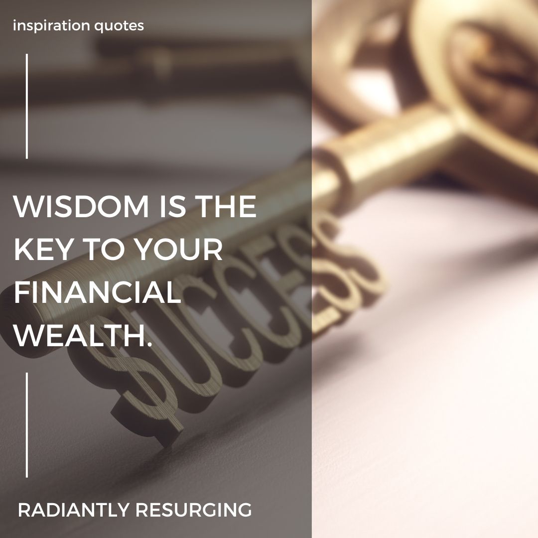 Another aspect of wisdom is that when you have it, you will make wise investments which will prevent you from losing all your livelihood and what you have worked for.