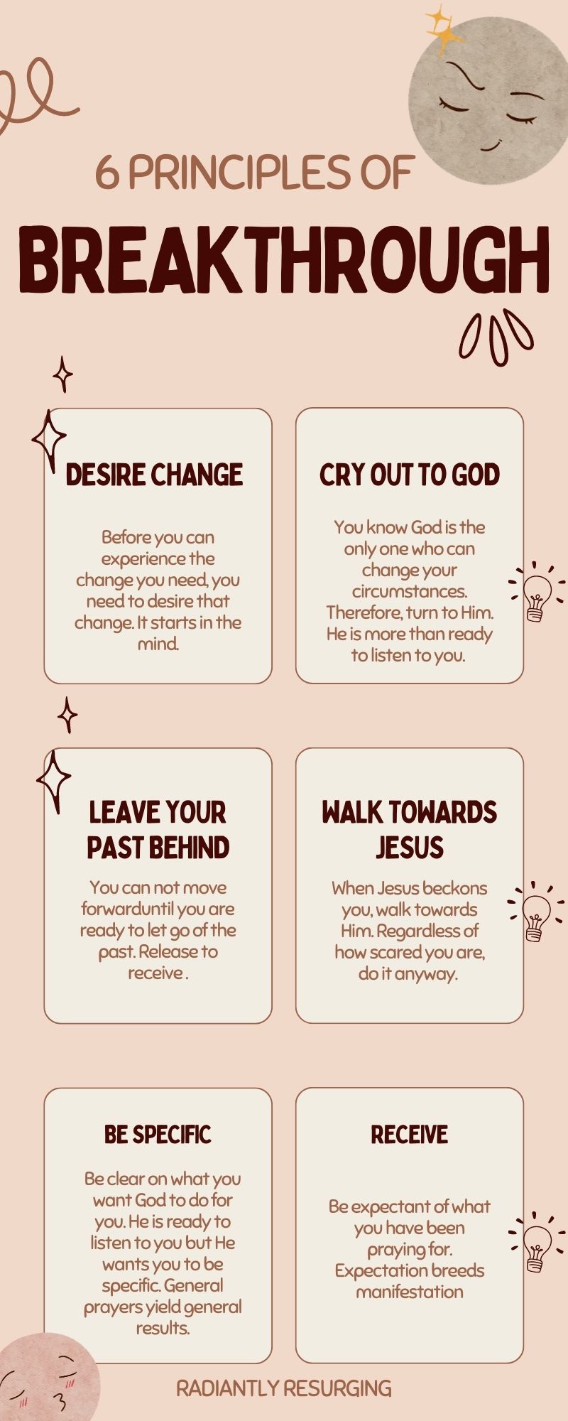 Just like Bartimeaus, I believe it is time for you to take a stand and go for your breakthrough full throttle. The kingdom of God suffers violence and the violent take it by force. What’s holding you back from receiving your breakthrough today? What mindsets do you need to let go of today? Allow these 6 key principles for your breakthrough to motivate you to step into your place of visitation.