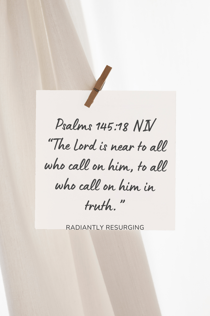 Psalms 145:18 NIV “The Lord is near to all who call on him, to all who call on him in truth.”