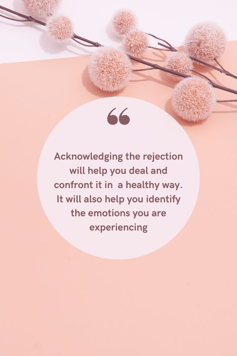 It is important that you acknowledge that you got rejected. Pretending it did not happen will only prolong the 5 stages and the sooner you accept it the sooner you will get to the acceptance stage which is where you should aim to be. When you acknowledge something, you deny it the power to torment you. Remember that inner critic? It will torment you until you acknowledge that rejection happened. Be honest with yourself about the emotions you are experiencing. And allow yourself to feel them. Obviously, the process is uncomfortable but well worth it.