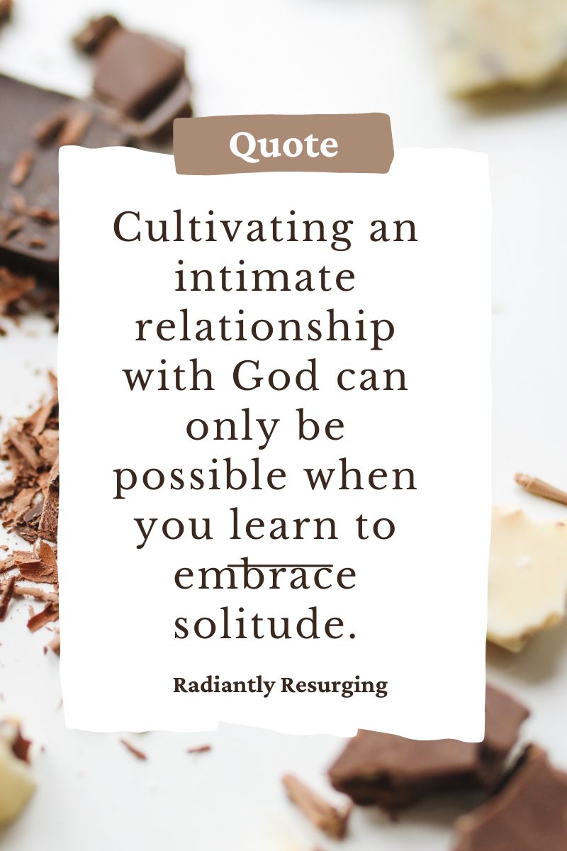 - You will cultivate intimacy with God when you learn to embrace solitude.