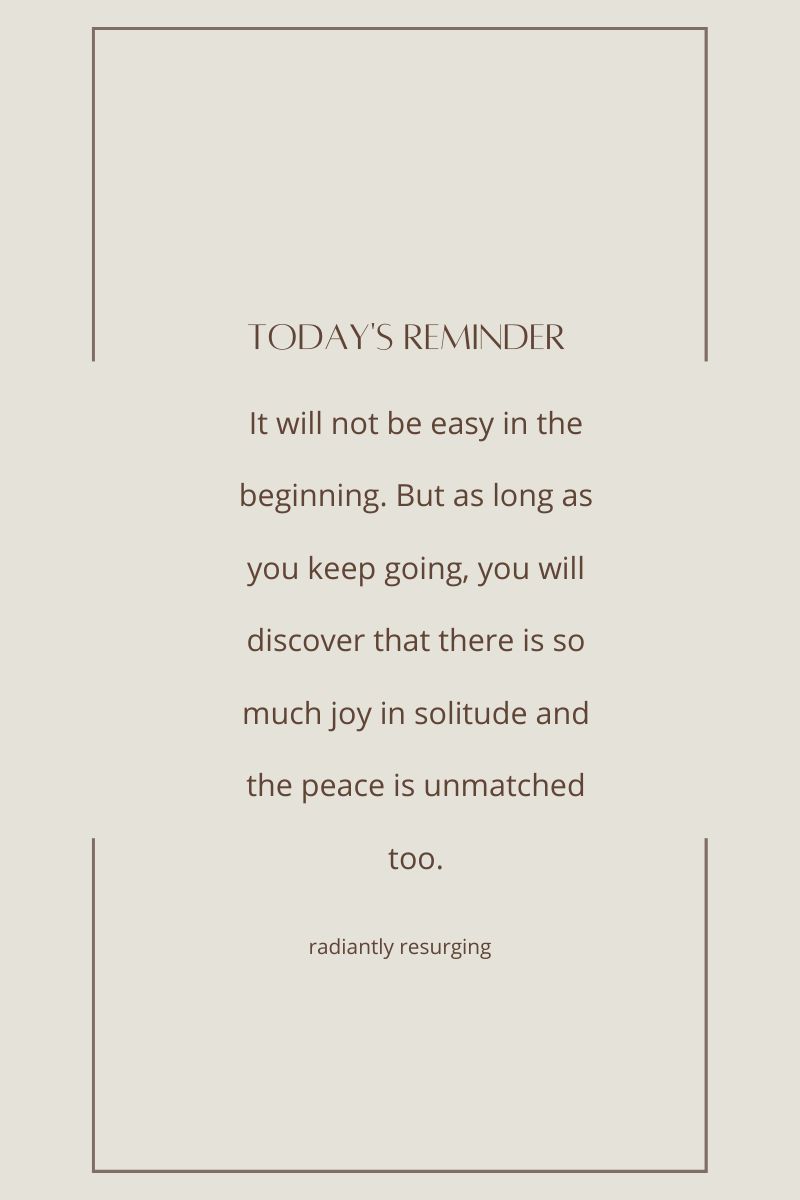 It is important to have moments where you get to pause and reflect on your life. You will have moments where you are overwhelmed or dealing with difficult situations and for you to experience true lasting healing, step out of the crowd and embrace solitude. Because it is in the solitude that your faith is strengthened and your strength is established. The longest relationship you will ever have is with yourself so you might as well learn how to spend time alone and love yourself.