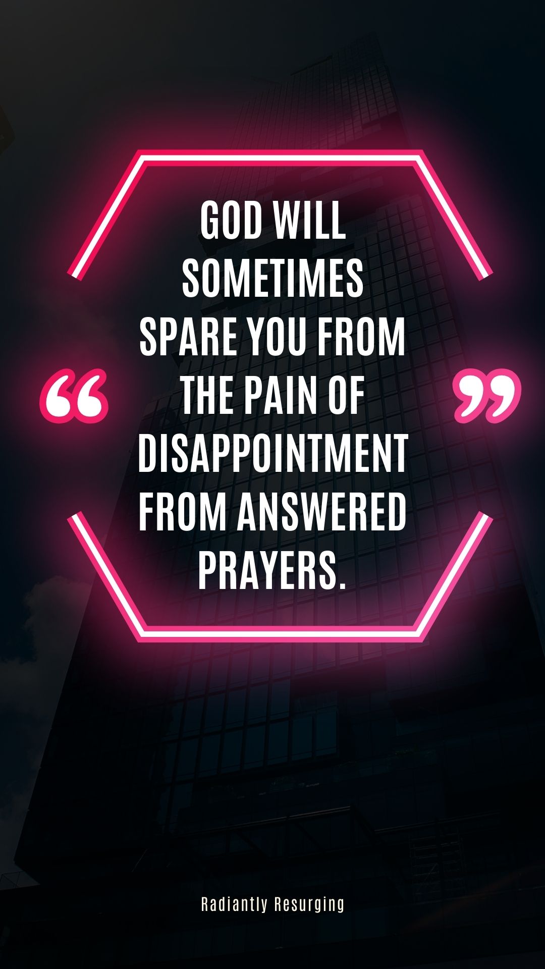What if the very thing you’ve been praying for is beneath the plan that God has for you? Could it be that God is sparing you from the pain of the disappointments from answered prayers? Think about that for a second. What if God is keeping you from the disappointment of the very thing not bringing you the fulfillment you think it should bring you?