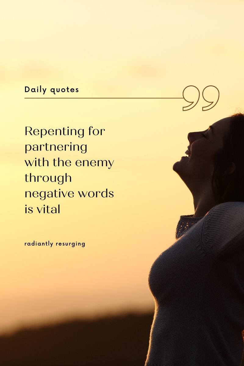 When you use negative words, you are hindering your breakthrough. You see the same avenue you used to curse is the same avenue you will use to bless. Denounce partnering with the enemy. Yes, you did not know then, but now that you do you need to dissociate yourself from those words. Reverse the curse. You say that you repent for the words that you spoke against yourself or those you had authority over.