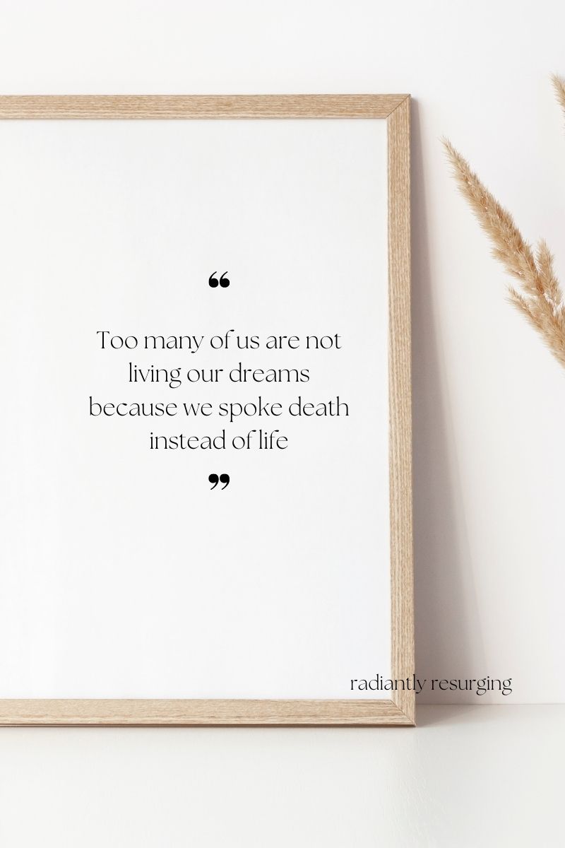 And you see, you don’t have to make a long proclamation to curse something. Cursing simply means speaking death over a situation. Or simply just agreeing with the enemy. God’s words will always bring life. So anything that does not bring life comes from the pit of hell. Have you in your frustration, said something like ‘I quit’?